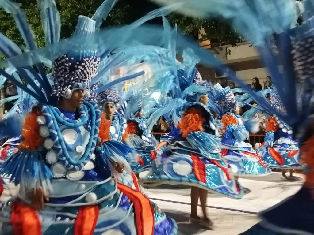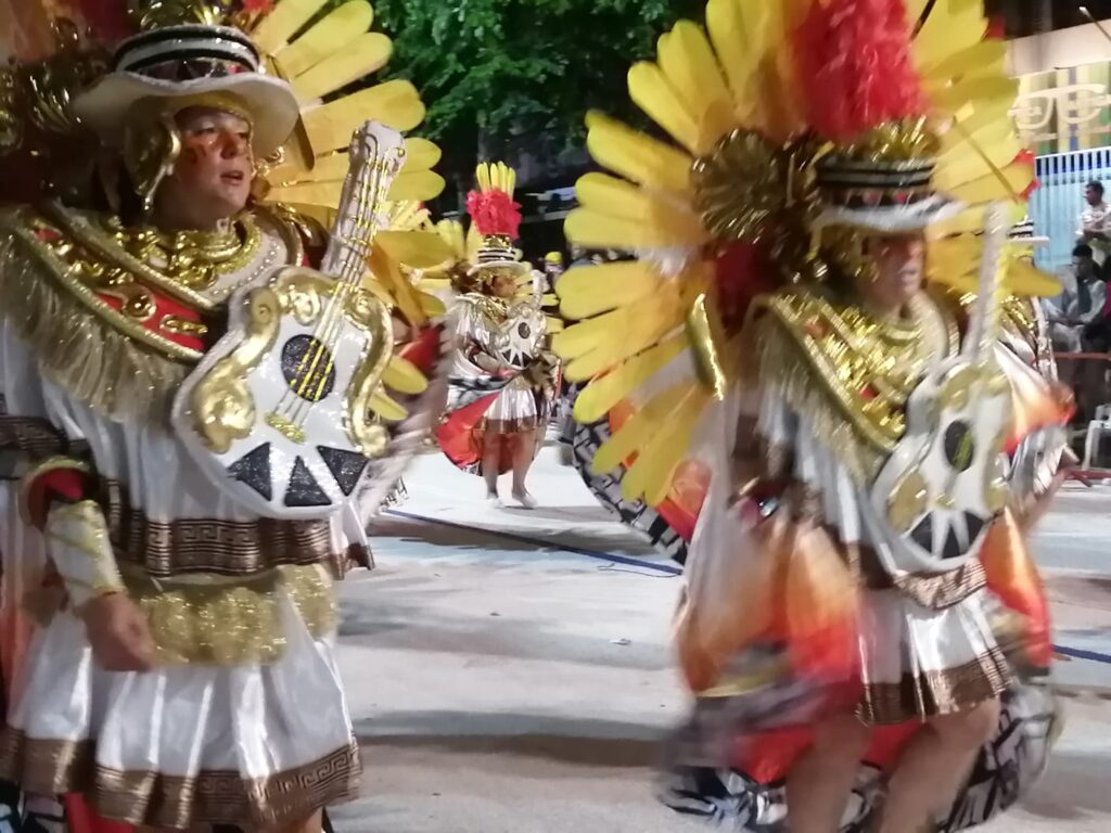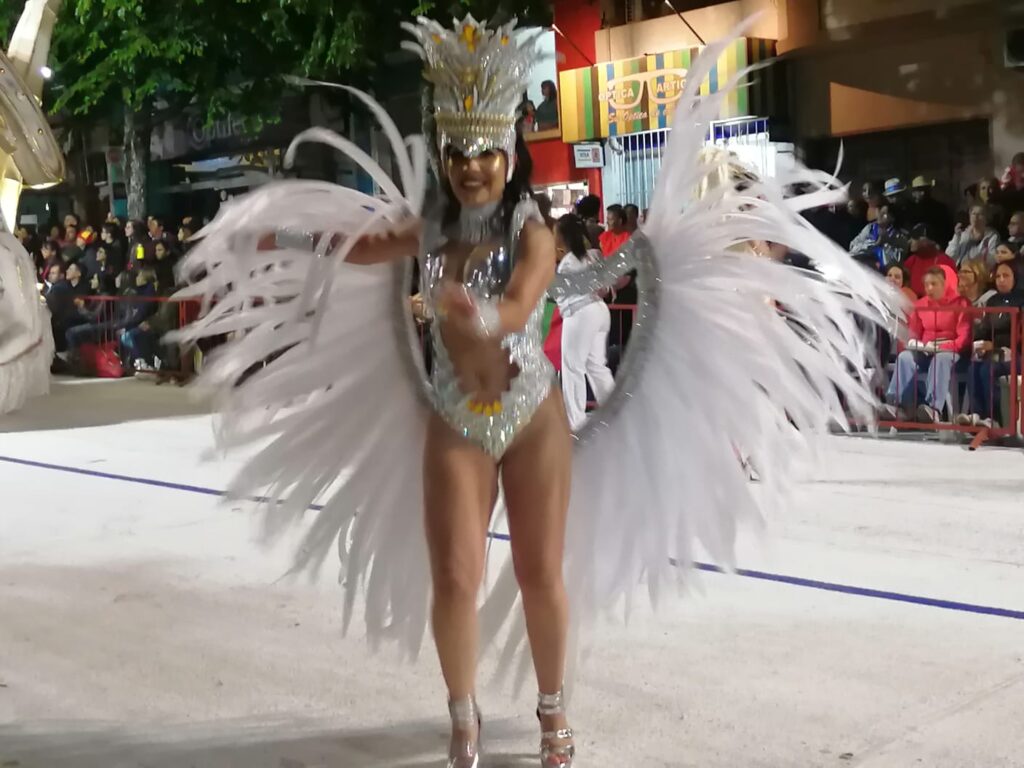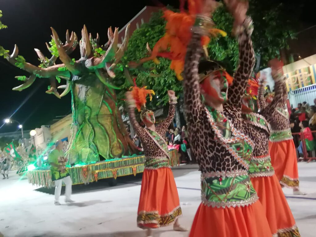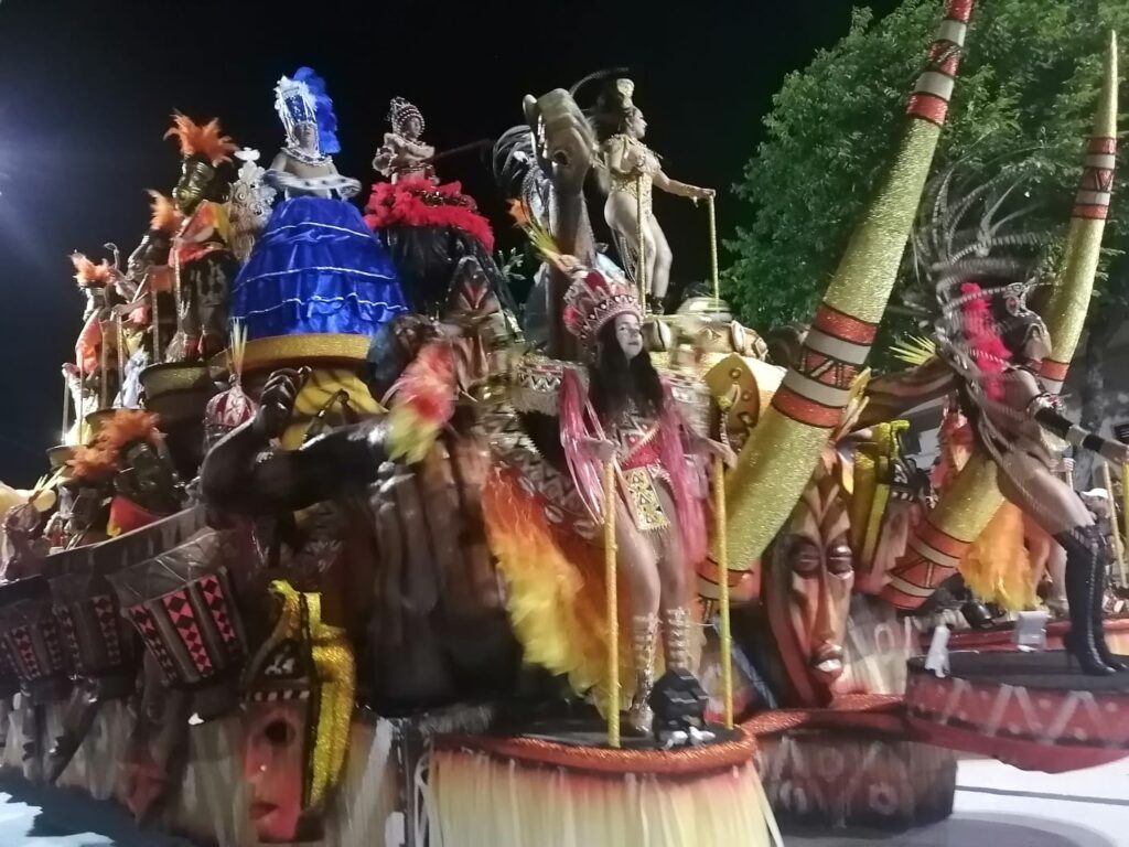 Fue el colorido y el ritmo que año a año le impregnan las Escuelas de Samba. El ritmo contagia y la gente que está dispuesta a lo largo de la Avenida Lecueder celebra el pasaje.