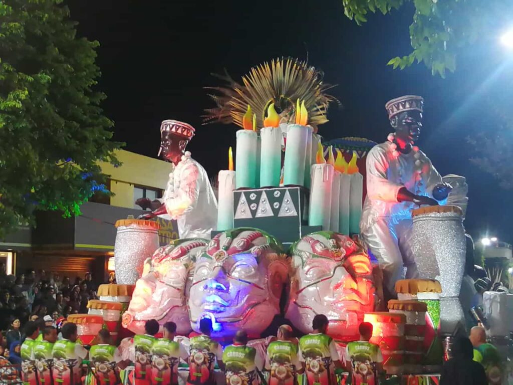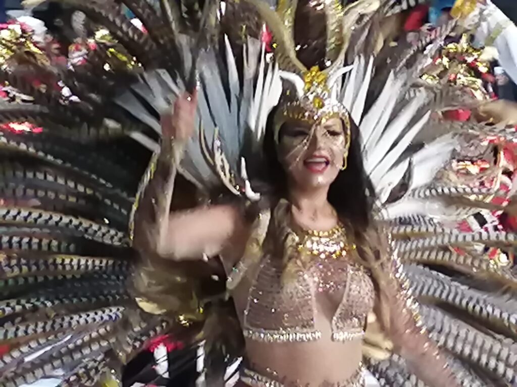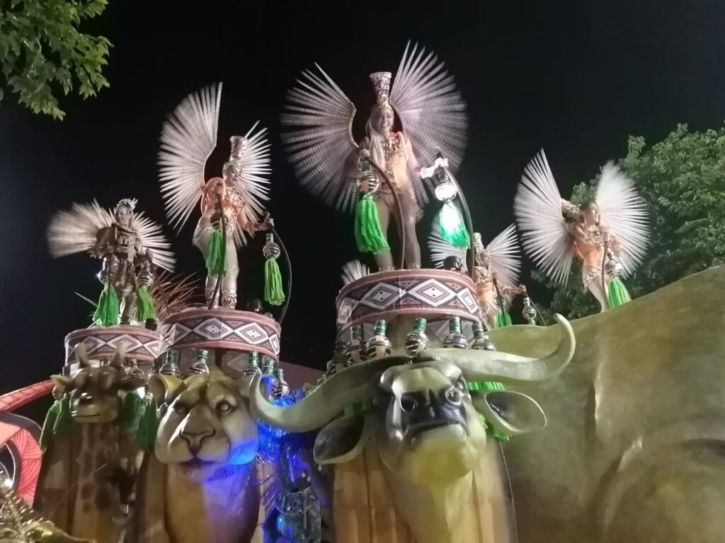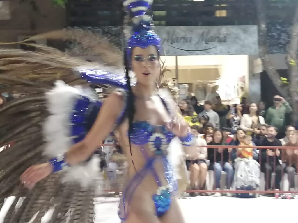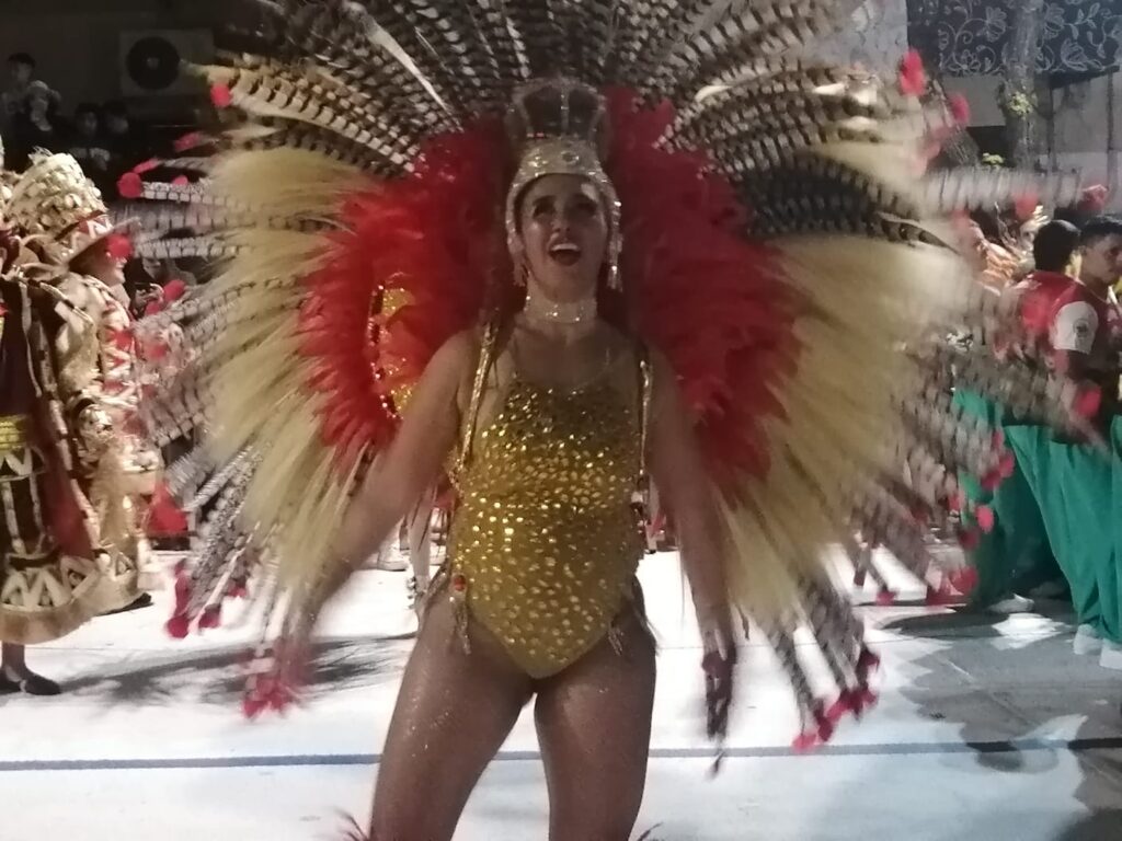Fue el colorido y el ritmo que año a año le impregnan las Escuelas de Samba. El ritmo contagia y la gente que está dispuesta a lo largo de la Avenida Lecueder celebra el pasaje.