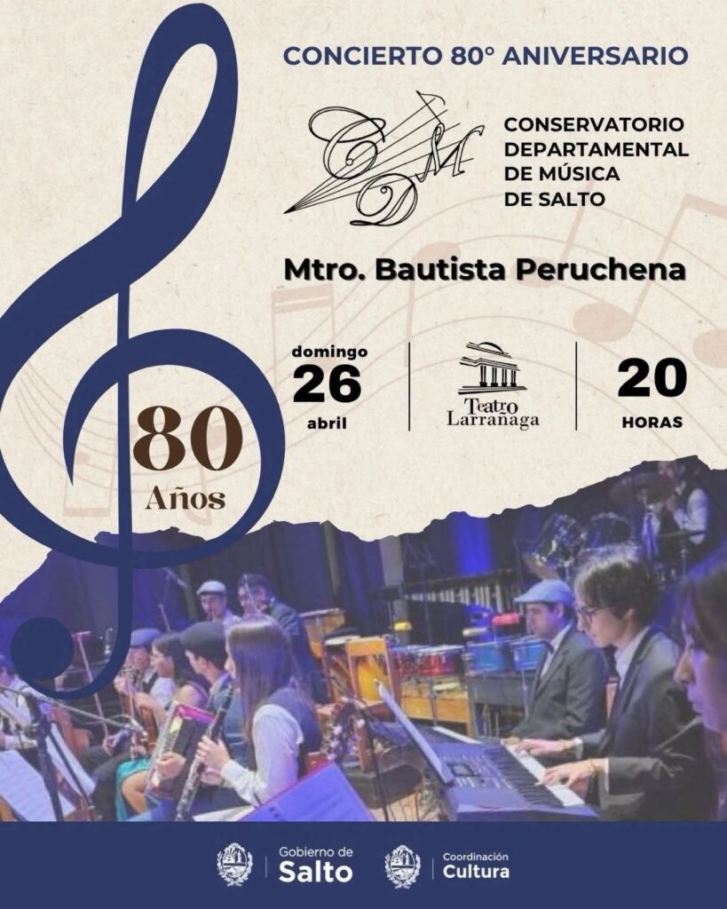 El Conservatorio Departamental de Salto Maestro Bautita Peruchena, celebra este domingo 26 de abril su 80º aniversario con un concierto especial.