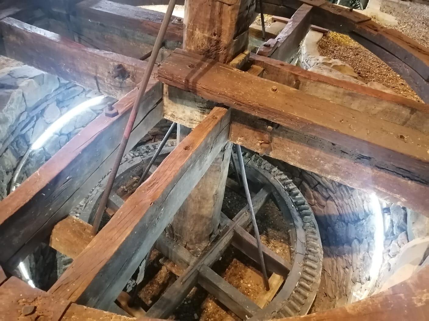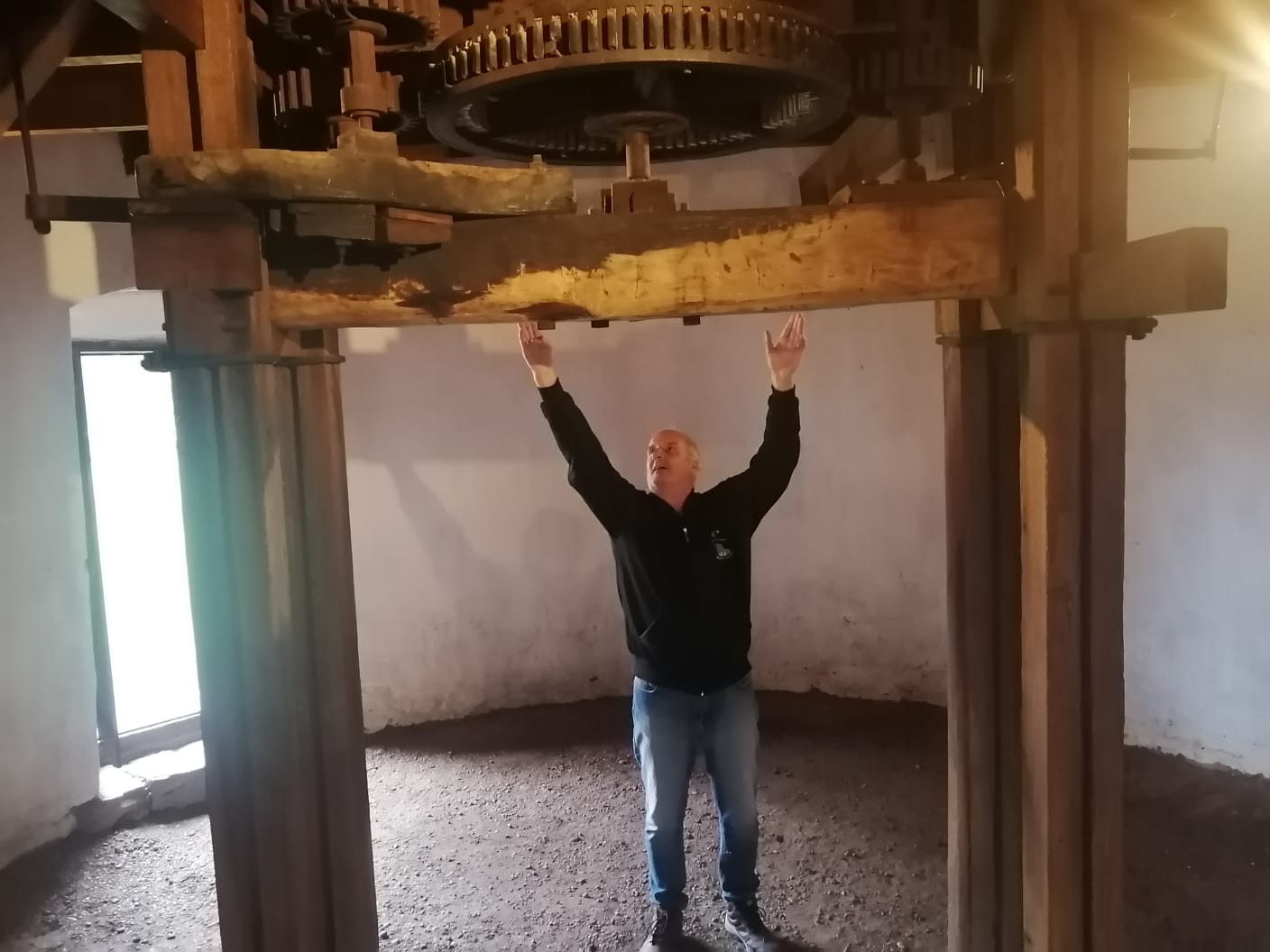 Juan nos comentaba que en el tercer piso se encontraba una pequeña rendija para dirigir las aspas del molino adonde se situara la dirección del viento.