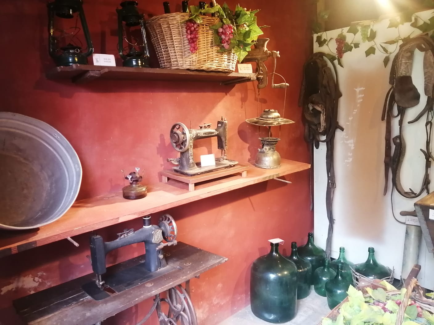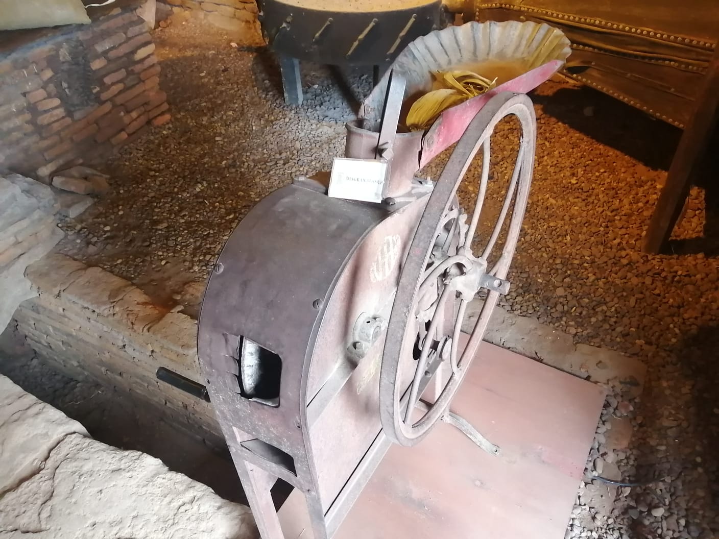 En el lugar se exponen herramientas de la época como la fragua con el fuelle, la desgranadora de maíz, la balanza, la llenadora y la impresora de bolsas.